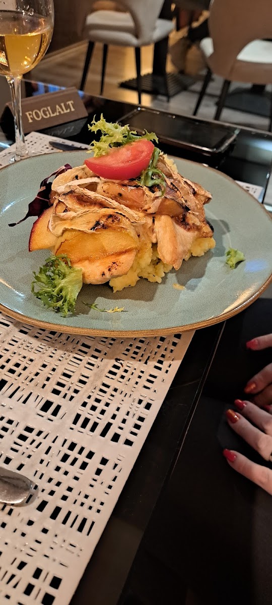 One of the standout dishes you simply can't miss is the Sajtkéregben Sült Pulykamell Wokzöldségekkel Pestoval (Cheese-Crusted Roasted Turkey Breast with Wok Vegetables and Pesto). This dish combines a beautifully seasoned turkey breast, perfectly roasted with a crispy cheese crust, accompanied by fresh wok vegetables and a burst of flavorful pesto. It’s a delightful treat for your taste buds, showcasing the restaurant's dedication to quality ingredients and thoughtful preparation.
